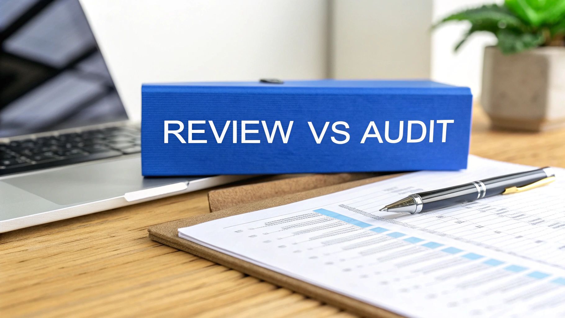 From a compliance standpoint, these two services are worlds apart. An audit is designed to provide reasonable assurance that your statements are free from major errors, which requires the CPA to dig deep into internal controls and gather hard evidence. A review, on the other hand, only offers limited assurance. The accountant primarily uses analytical procedures and asks questions, but they aren't performing the rigorous verification you'd see in an audit. You can discover more about how these financial services meet different stakeholder needs.